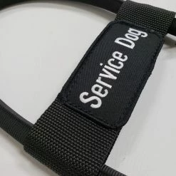 The Nylon Clip-on Bridge Handle w/Identification Band is a light weight bridge handle. It comes with a removable identification band. This bridge handle is 12” tall. Bridge handles are the taller handles that are used on and attached to the service dog vest to extend the reach of a handle for the handlers comfort and control. The bridge handles are a great addition to any service dog vest as they help the handler to stand without bending over the dog. The Nylon Clip-on Bridge handle w/Identification Band will work with any of our vests that have D-rings for handles. This bridge handle is black with black nylon snaps and the ID band is a black band that has stand out white embroidery letters that state, “Service Dog”. Made in USA