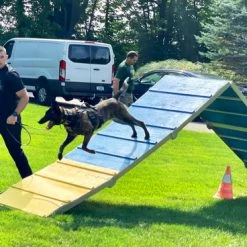 Deluxe and Easy to handle Activewdogs.com Agility Wall. This Agility A-Frame has an aluminum constructed frame with a wood top.