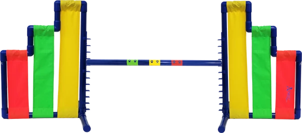 The Activedogs.com Cascading Wing Jump is part of the โPremium Seriesโ line of agility equipment.ย It measures 24โ wide and 36โ tall. The Cascading Wing Jump frame poles are 1.25โ O.D.ย This jump is sturdy, large and very attractive.