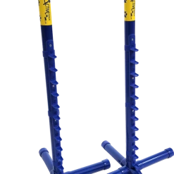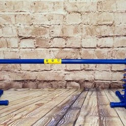 The Activedogs.com Pedestal Jump is part of the “Premium Series” line of agility equipment. It measures 36” tall. The Pedestal Jump frame poles are 1.25” O.D. This jump is stable because it has 4 feet at its bottom. The pedestal jump frame is blue with yellow vinyl wraps on the upright poles and on the jump bar. There is no tape on the jump and comes already wrapped for you. You can choose from a jump bar of 48” or 60” wide. The displaceable jump bar can be set from 4” to 26” in height.