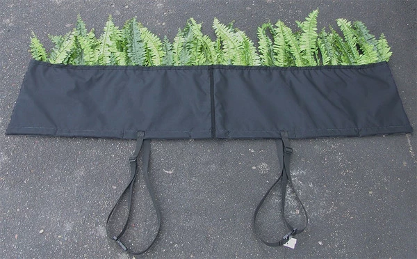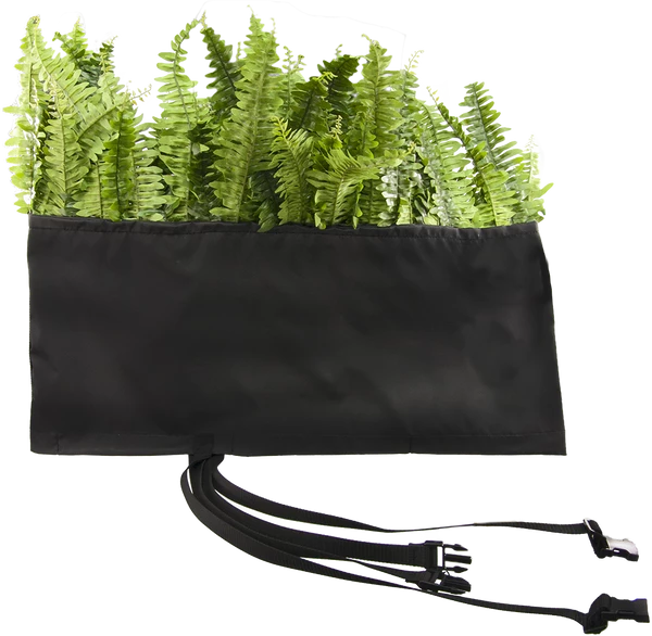 Constructed out of the same exterior fabric that our hurdle is constructed of, the top foliage is soft and will not hurt the dogs underbelly. The foliage is bendable so you can arrange it how you would like and if it gets smashed down just bend it back in position. Slip the Brush Boot Topper easily over the hurdle. The weighted hem in it and two buckling adjustable securing straps hold it securely in place. The Brush Boot Topper will not fall off or be pushed off the hurdle. When not in use roll up for easy storage. Because the side poles slip through the Brush Boot Topper the topper can be used when the jump is at any height you set and use.ย Made in the USA
