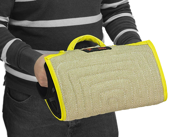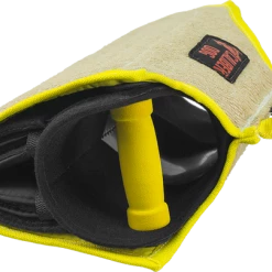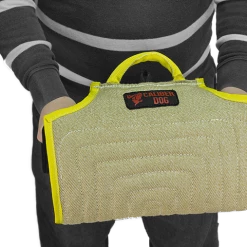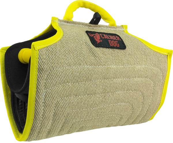 The CaliberDog Bite Developer is made by professionals for professionals. This sturdy sleeve will last for a long time when the sleeve cover is used. The sleeve is made from NK material which is specially made for bite sleeves. There is no more metal or hard plastic for increased safety for the canine. The sleeve bite bar can be adjusted in 3 ways. There are 2 inserts in the bite bar which can be removed to decrease the stiffness of the bar. This feature is ideal for training puppies or canines new to bite development. There is a padded handle inside the sleeve for comfort. The barrel of the sleeve is made from hard plastic to protect you from any missed bites. The hand stitching not only make the sleeve look great but it gives it outstanding durability.