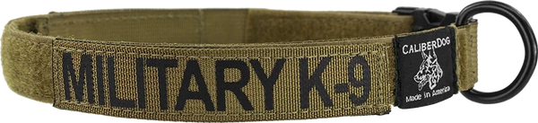 CaliberDog 1×5″ ID Panel with Black lettering on Coyote or Gold lettering on Black. Uses hook & loop to attach securely to items such as CaliberDog 1″ ID Collar (844101).