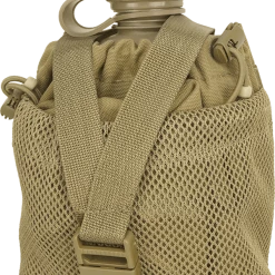 Now your working K9 can carry its own water supply and dish. The MOLLE Canteen Bag is made to be used with the K9 Tactical MOLLE Vest or by itself. If attaching to the vest it clips on easily with two webbed MOLLE sticks, included with the MOLLE Canteen Bag. The Canteen Bag comes with a plastic one quart screw top canteen bottle. The canteen securely fits into the bag with locking bungee draw cord and plastic side release buckle so it can easily be removed from its bag. The front of the bag has a mesh pocket that houses the foldable water dish. The water dish is double layer, waterproof material.