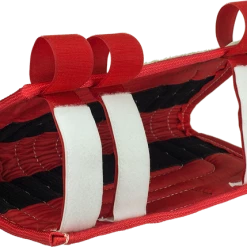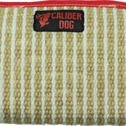 The Short Sleeve Jute Cover is intended for use with the CailberDog Short Sleeve. The Cover features 3 hook and loop closures on top for securing the cover to the sleeve. There is also hook and loop on the cover that attaches to the sleeve. The cover is made from a jute material. The inside is padded for extra protection. The inside color varies.