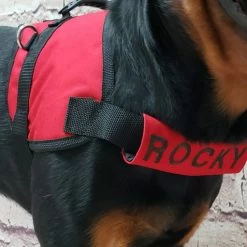Our Chest Strap Identification Covers are a great way to show a custom message with your working dog. Choose your own text, up to 20 characters. Choose from 2 different lengths & 13 different colors! The Custom Chest Strap Identification Covers are padded and lined to give your dog comfort. Covers open and close with hook & loop so they are very easy to put on and take off. These strap covers fit a wide variety of vests. MADE IN THE USA