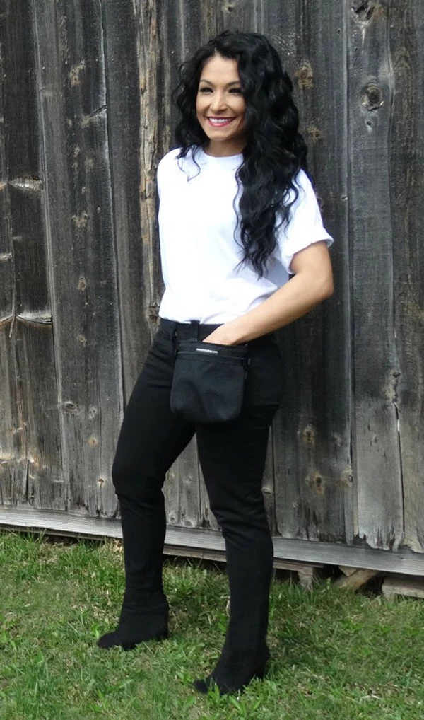 The Clip-On Bait & Phone Bag is designed to be used with pants that do not have belt loops. I use my Belt Loop Bait Bag nearly every day. The issue arises when I wear pants that do not have belt loops on the pants, like leggings. So I invented this handy bag that simply clips onto the pants waist band. I also generally have my cell phone with me and that gets messy in with my bait. On the Clip-On Bait & Phone Bag there is a zipper front mesh pocket so the phone can be easily seen and heard when it rings. Because the mesh pocket zips you don’t have to worry about losing your phone when running. If you use head phones then the headphone cord can slip out the top of the zipper, leaving the phone secured in the pocket. Like our Belt Loop Bait Bag this bag can be worn in the front, back or sides of your pants waistband. This bag constructed with a double layer construction. The interior is made from a water resistant vinyl so it is very easy to wash out, making clean up a snap. The exterior is made of Cordura fabric and the heavy mesh pocket is on the bag front. This bag is black in color and MADE IN USA.