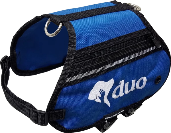 We have designed our Custom Logo Butterfly Dual Pocket Dog Cape Vest for those dogs who need to transport a few objects that do not require the larger backpack or saddlebag vest. The Custom Logo Butterfly Dual Pocket Dog Cape Vest is lightweight, simple and very functional. The pockets do not expand like the saddlebag or backpack vest; yet, they are wide enough to fit a checkbook size wallet, sunglasses, keys, pill bottles, identification papers, etc. in them. Since the vest has a wide pocket design, we have placed two girth straps on the Custom Logo Butterfly Dual Pocket Dog Cape Vest to keep it in place while the dog is moving. Both girth and chest straps are adjustable.