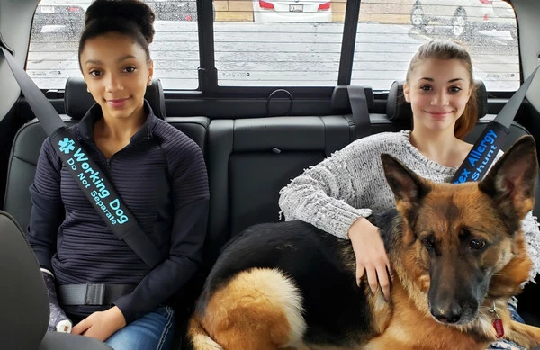 The ActiveDogs custom text medical alert seat belt cover serves multiple purposes. It address and identifies traveling with your service dog, medical condition, or gives you a large area to display any other type of message you desire. Having this on you belt can be helpful for emergency personnel in the event of an accident or emergency.