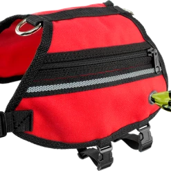 Our Reflective Small Dog Vest is designed for the small working dog. It is made with weather resistant 1000 denier nylon/urethane coated fabric and lined with quilted fabric for comfort. The seams of this vest are bound in reflective webbing as an added safety feature for your dog. The front chest and the girth straps are adjustable. The front chest strap is made of elastic material. There is a D-ring for attaching a leash.