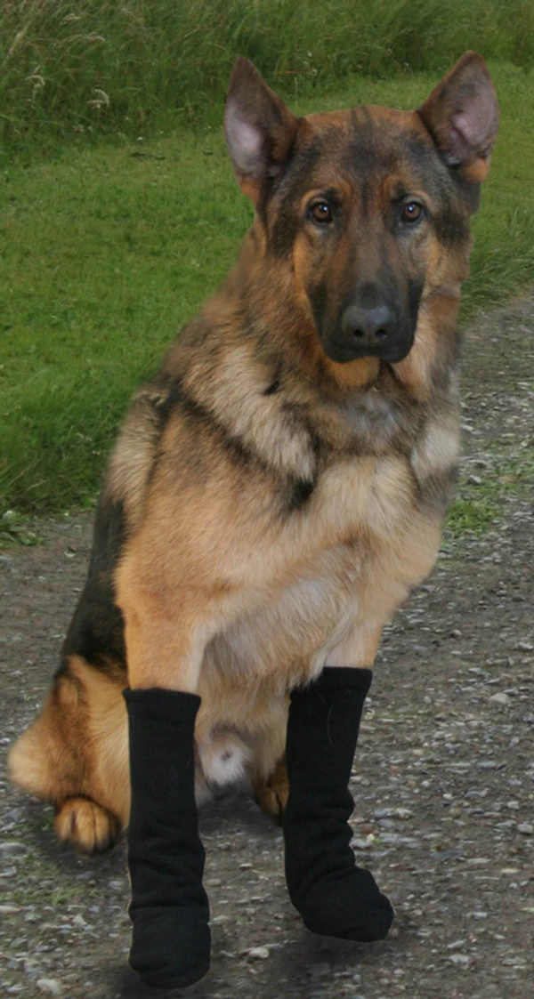 Extra sox are always a good idea. These sox work inside our dog boots. They are made out of black fleece and are machine wash and dry. Double Stitched and finished edges so the dog toe nails will not get through these sox.
