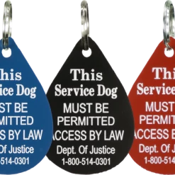 The Engraved Service Dog Access Tag is made with an hard acrylic material that will withstand any weather element. Engraved on each side. Made in USA.