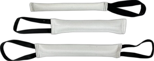 These tugs work great for training, bite-work, and building motivational drive. Tug exterior material is durable fire hose for tugs that are made to be worked over and over again. You will be impressed with the tugs stability and with the tugs heavy duty quality.