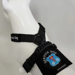 The No-Pull Service Dog Strap Harness has a great range of adjust-ability. Both the chest straps, underbelly strap, and the girth strap is adjustable. There are no loose floppy straps on the No-Pull Service Dog Strap Harness. It comes with two Service Dog patches that are Velcro backed so they can be changed out. The entire back plate is also Velcro so patches or an ID pocket window accessory can be added, (sold separately). The handle is a raised molded easy grip handle with two D-rings. The D-rings on the sides of the handle can work to attach an extended bridge handle, (sold separately). This harness is black in color and is offered in two sizes. Girth size for M/L harness is 22” to 32” and the size XL harness will fit a girth from 29” to 44”. Bridge handles, custom patches, ID window pocket, and ID cards are sold separately.