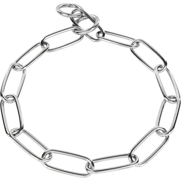This is a steel collar that is chrome plated. It is designed to help the dogs fur from breaking down. There is no flaking or rusting.