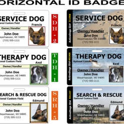 If it is a Service Dog ID, we will put the ADA information (American with Disabilities Act) on the back of the ID. This information addresses the issue of permitted access to public buildings.