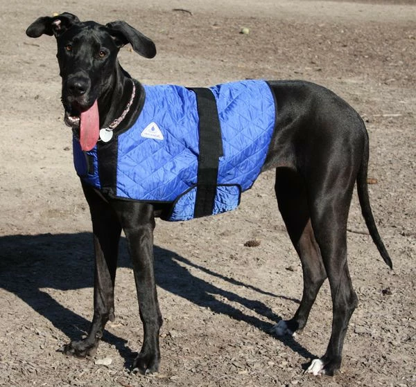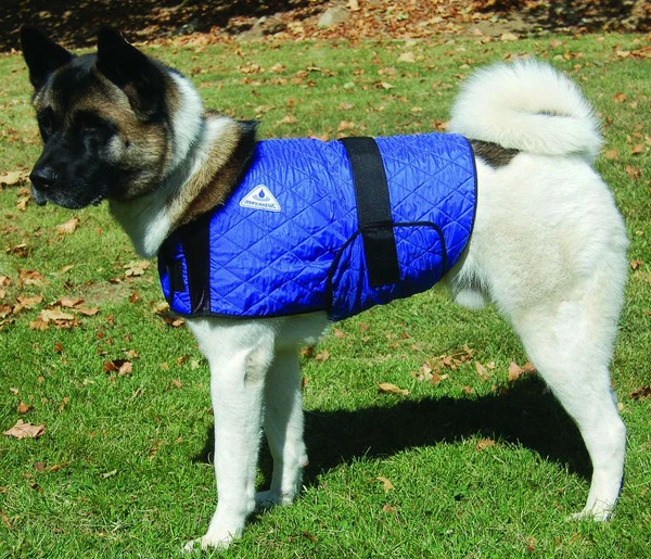 HYPERKEWL™ Evaporative Cooling Dog Coat secures at neck and around the belly keeping your dog cool on hot days while it runs and plays. 100% nylon outer material with Lycra panels at the shoulders to allow the dog to move without restriction.