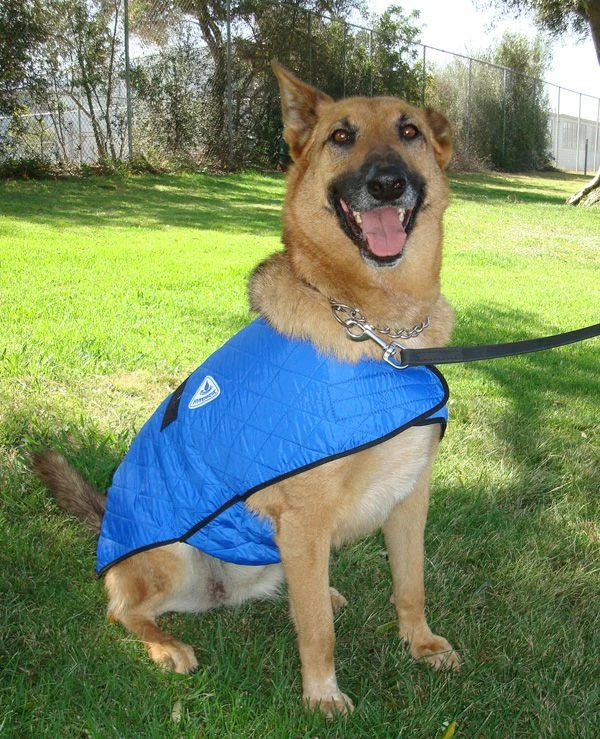 Ideal for warm, dry climates. Activates quickly by soaking in water for 30-60 seconds, and provides 5-10 hours of cooling relief per soaking. This coat is lightweight & durable.