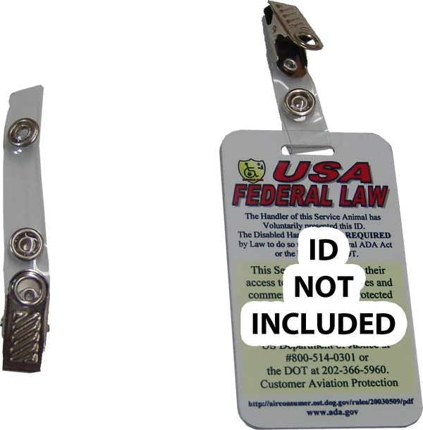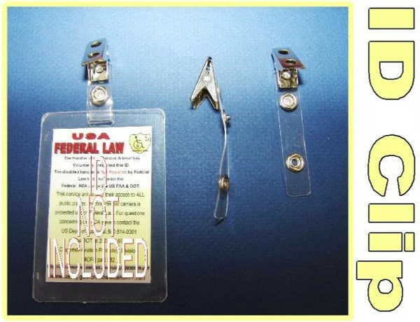The ID Clip is a metal pinch snap clip attached to a plastic tab. The tab fits through an ID slot and can be snapped closed.