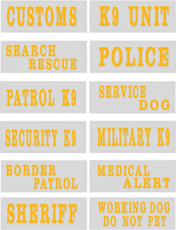 ID Panel with black or gold lettering.ย Highly reflective background.ย Uses hook/loop to attach securely to item such as Nylon Patrol Harness (763055) or Embroidered Patchย Collar (407083).