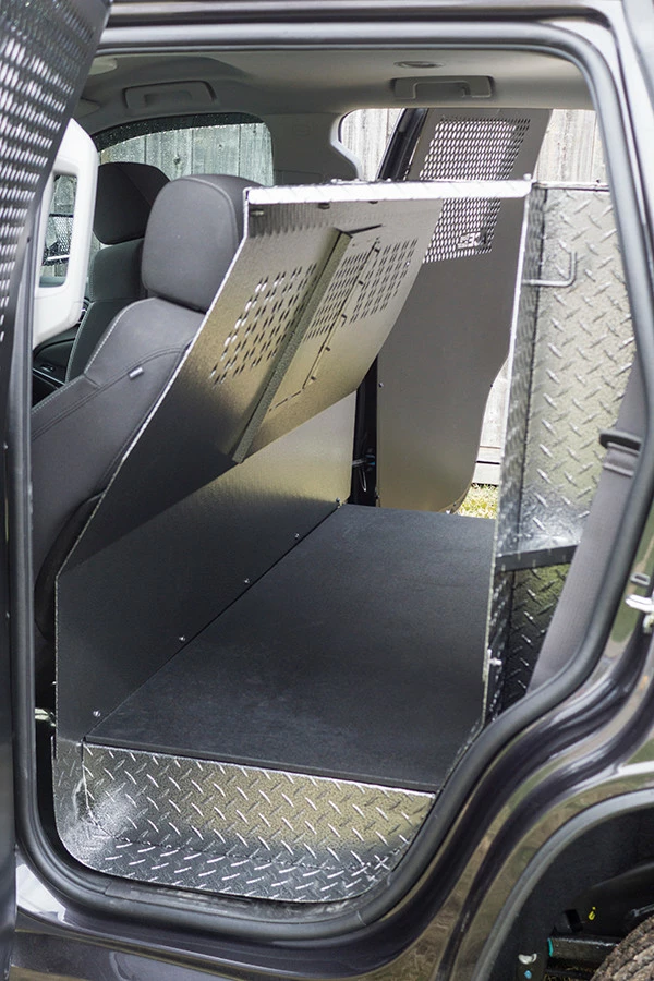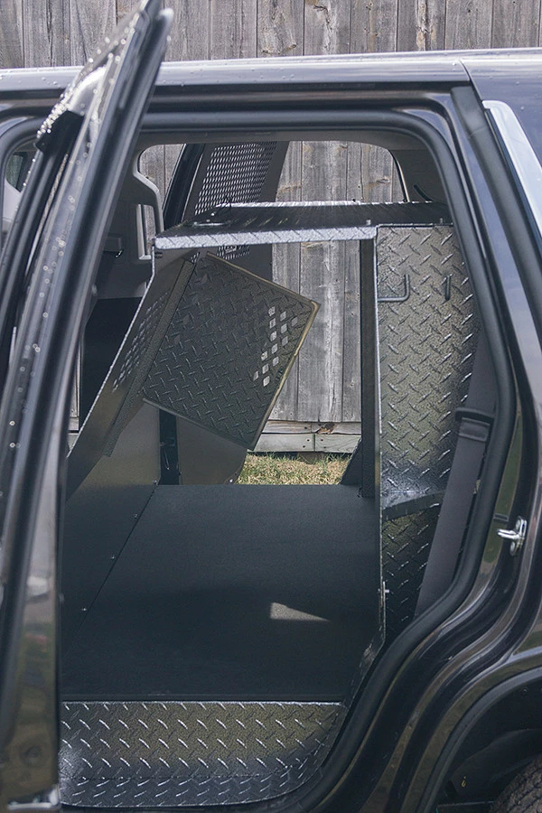 Includes 1/2″ thick solid rubber mat for the K9 area. An LED light is also included in the K9 area.