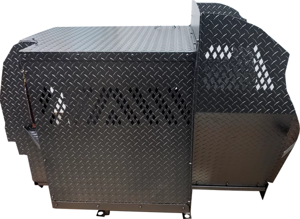 Police K-9/Prisoner Vehicle Insert are easy to install, they bolt to the existing factory seat bolts and panels simply screw together. This insert being made completely out of aluminum have several benefits; Aluminum does not conduct heat so it does not get hot like steel and raise the temperature inside the K9 containment, Aluminum will never rust like steel does, Aluminum is lightweight but strong so your K9 is always safe. Designed and made by Activedogs.com in the USA.