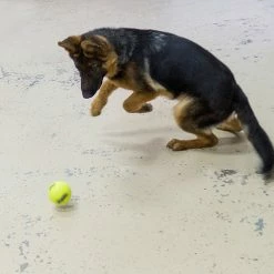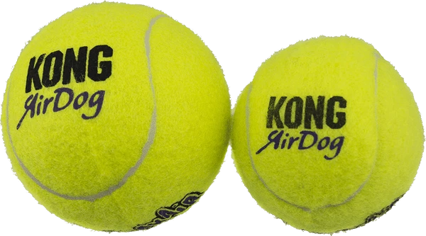 Air Kong Squeaker Tennis Ball is made especially for dogs with the squeaker hidden under the felt. Made from non-abrasive non-toxic felt so not to ruin the dogs teeth like regular tennis balls and be safe for the dog. The ball comes in two sizes, Medium for average dogs and Large for the larger breeds. The medium ball is 2.5″ in diameter while the large is 3″ in diameter. These items are not chew toys! Please do not leave your dog unattended and allowed to chew these items. May be harmful if ingested.