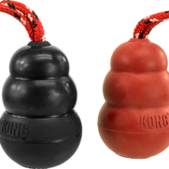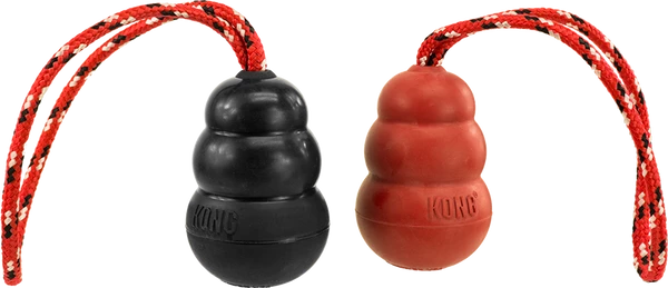 The Kong w/Handle puts a different spin on one of the worlds most popular and favorite Kong toys. The addition of the rope makes it so you can now use the Kong for more than just a chew toy. You can toss it much more easily or play tug of war with your dog. It also makes it so you can store your Kong by hanging it.
