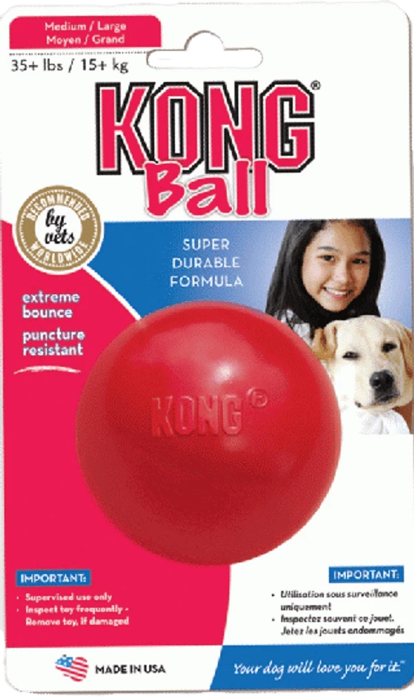 Kong Rubber Ball is not just any ball. This ball is made of puncture-resistant natural rubber for long and safe play with the dog. The large ball comes with holes for treats. This is the most durable and the best bouncing ball on the market. The large size is 3″.