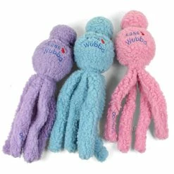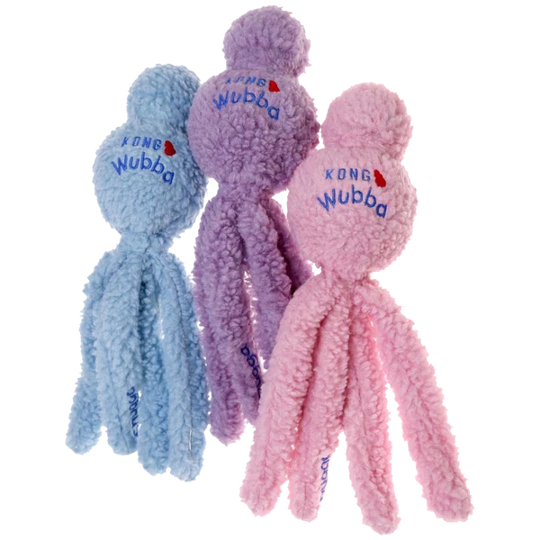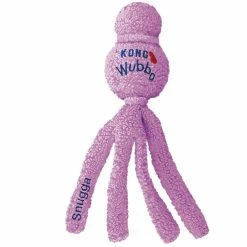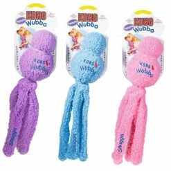 Kong Snugga Wubba is a fun, playful, interactive toss toy. Soft, thick fleece covers two rubber balls. Puppies find this toy to be very comforting to snuggle. Contains no squeaker for quiet, gentle indoor play. The long tails make it easy to pick up and throw.