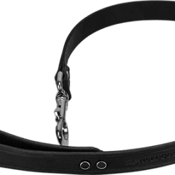 This leather leash is made of 1″ wide, supple, black latigo leather and features nickel-plated hardware. Latigo leather is a durable, flexible, softer leather and it breaks in faster. It is dyed solid all the way through, so it will not fade. Because of the conditioners that are infused with oils during the process latigo leather is almost waterproof. It will not dry out like most harness leather. It can be easily cleaned and oiled after use.