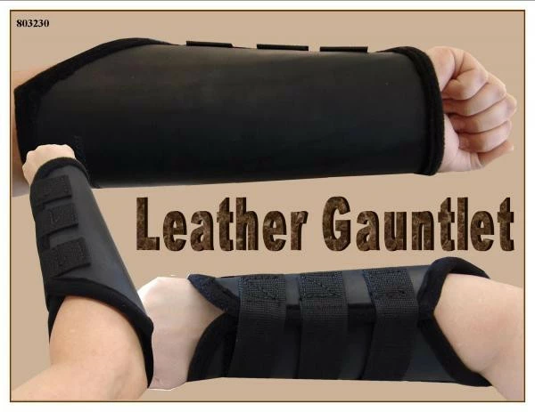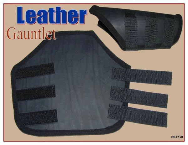 The interior of the gauntlet is padded to provide comfort and fleece lined to keep your arm dry. The outer edges of this gauntlet are covered to protect your arm. The contour cut of the gauntlet will protect your elbow and still allow ease of movement for your forearm. This Leather Gauntlet can be worn on the right or left arm. It has three adjustable Hook and Loop closures that will allow a more personal fit. Designed to be worn under a bite suit, tac suit, or lightweight bite sleeve for added protection during bite work. It can also be worn under clothing for those trainers who deal with aggressive or fear bitting dogs. The color is black. Made in the USA.