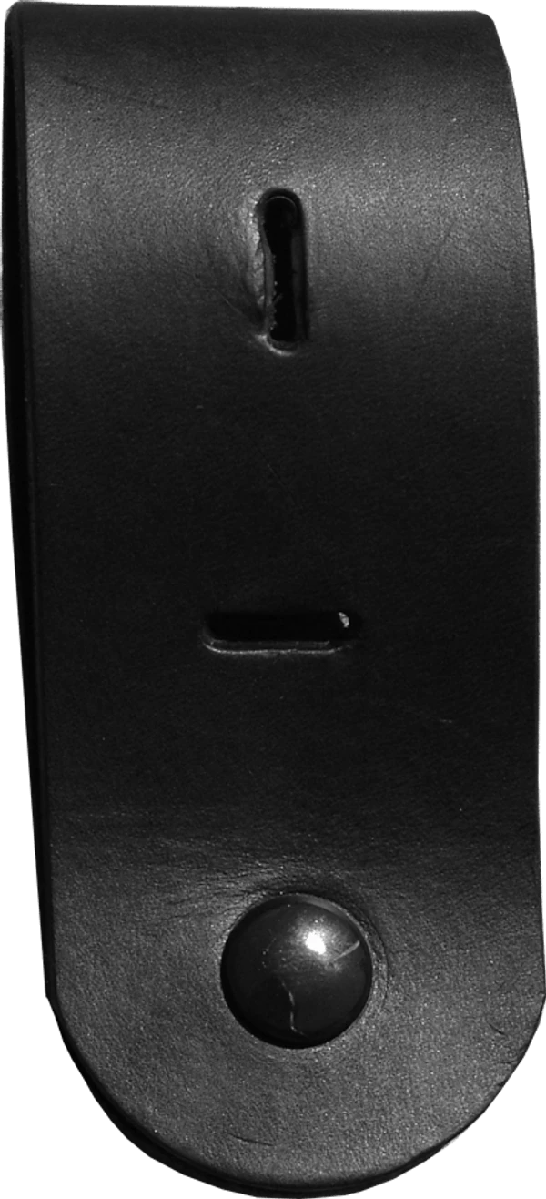 This badge holder is double slotted so that the badge is placed through the leather badge holder for secure attachment. On the bottom there is a snap for easy placement onto the dog’s collar.