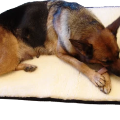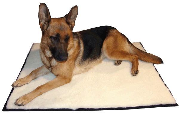 The Magic Carpet Dog Beds are double sided with our high quality shearling fabric on the front, and black heavy fleece on the back. The Fleece/Sherpa beds are very thick with dense fibers for maximum comfort. The shearling is also hospital grade material which makes it antibacterial and much safer than stuffed beds. These beds are great for summer or winter, they will insulate your dog from the heat of the summer and protect from the cold of the winter.