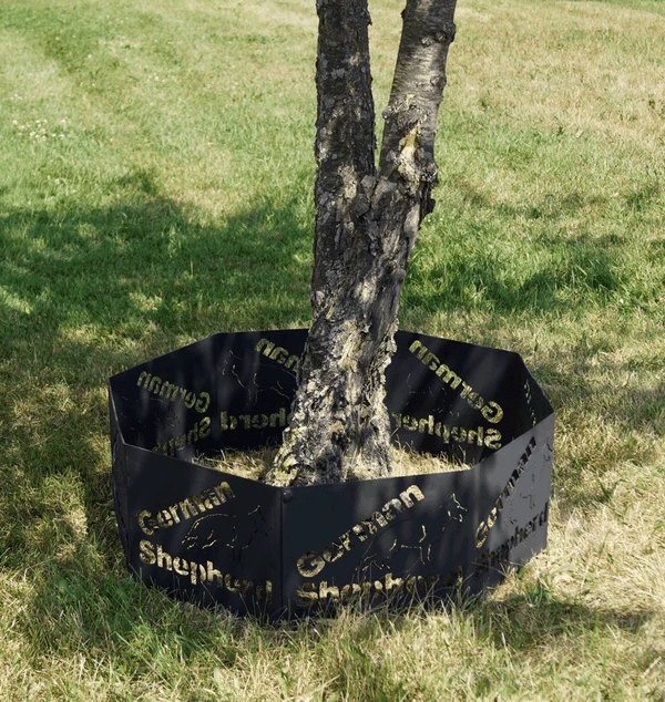 Space saving design makes storing or traveling with these rings very easy. No tools required for assembly. 2 piece design also makes placement around trees possible. Dress up your yard and represent your favorite dog breed.