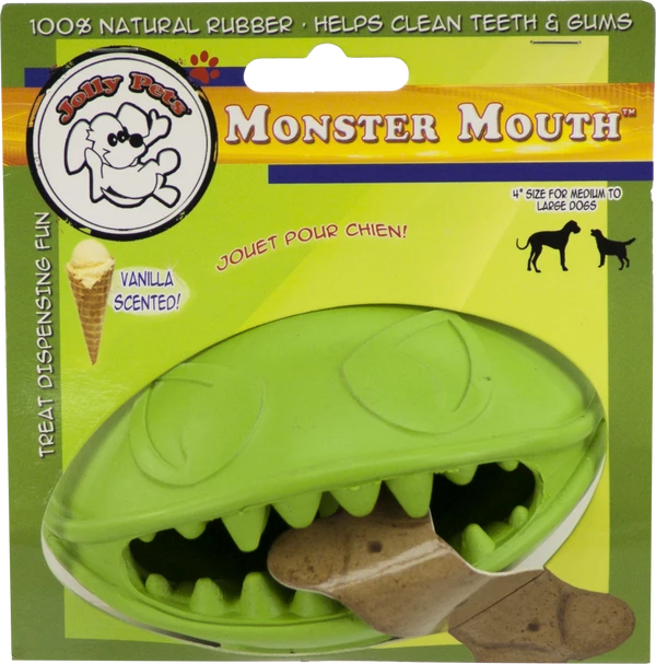 Break out the treats, and the camera! Your pup’s sure to look a bit silly with the Jolly Pets Monster Mouth inside their chompers, but they won’t care… it’s full of tasty treats! The Monster Mouth is a treat-dispensing chew toy that keeps your pal’s brain engaged as they try to retrieve the snacks. When every delicious bite is finally removed, the vanilla scented toy massages your dog’s gums and cleans her teeth as she continues to chew.