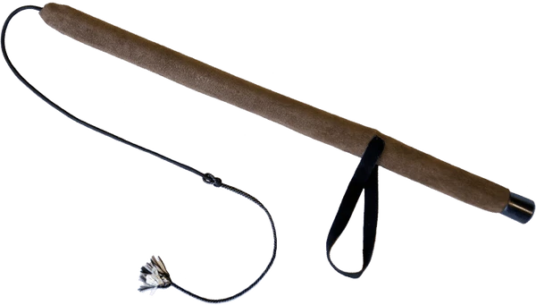 Padded Faux Suede Stick “Schlagstock” with Popper. The Schlagstock is used in protection dogs/Schutzhund trials. The Schlagstock (German word for Baton) is also used in protection dog training. By using the Schlagstock, the dog developes courage to stand its ground when someone comes at them with a object. This Schlagstock has an added drop popper to it. The 30″ drop popper when cracked makes a noise to help attract the dogs attention to the helper. The noise activates and excites the dog. The exterior is made of faux suede with a leather wrist handle. This stick has a flexible core that is covered in padding. The Schlagstock is not a hard hit on the dog because of the interior padding. This padded stick w/popper measures 22″ in length w/a 30″ drop popper at the end. It is 1.5″ wide with a leather handle to wrap around your wrist. The padded stick with wrist strap helps keep the stick in position while using the Schlagstock. The 1.5″ width makes for a comfortable grab and the faux suede is non-slippery. Made in the USA.