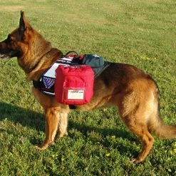 A beautifully embroidered vest-harness with two removable side bags and a petite top pouch. This is a super functional pack carrying dog vest-harness for your working dog. The features are many and the versatility of this Patriotic Tri Pack Vest is multi-functional. You have the look of a highly visible dog vest with the benefit of a harness. This patriotic Tri Pack Vest is done in a Red, White, Blue color scheme with beautifully embroidered silver stars on all three of the packs. The vest is padded for comfort to your dog and both the chest and girth straps are adjustable. Added safety feature of the entire vest outline is done with reflective webbing. Like all of the activedogs.com dog vests it is composed of the highest quality materials having high thread count.