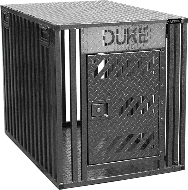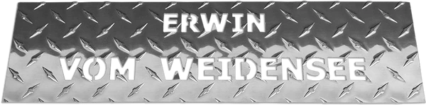 The Personalized Name Plate is made of sturdy diamond plate aluminum. We will put whatever wording you desire on the name plate, as long as it fits. Use your dogs name for a crate, name of your company or a simple welcome sign. The ways you use it are all up to you. There is a limit of 16 characters per line and up to 2 lines of text.