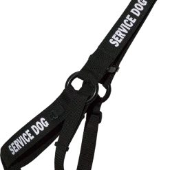 The Step-In Service Dog Harness & Leash is made with black webbing and your choice of red or reflective silver text. All the hardware on these harness & leash sets are black. The leash has a cushioned comfortable handle and a black bolt spring snap. All the straps of this Step-In Harness are adjustable and the harness will fit dog’s girth measurements from 24” to 38”. Choose from several text messages or have your own custom words put on this harness & leash set.