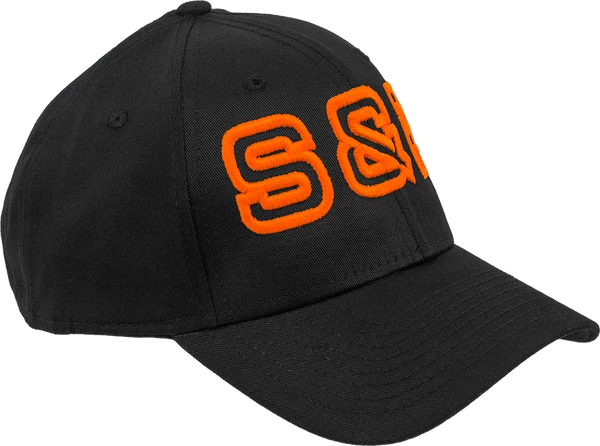 This ball style hat is embroidered in the raised letter style. The embroidery is done with bright blaze orange threads and is easily seen from a distance. Back of the hat has a Hook and Loop style closure for adjustment. Color is black. Embroidered here at Activedogs.com, USA