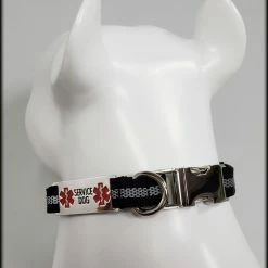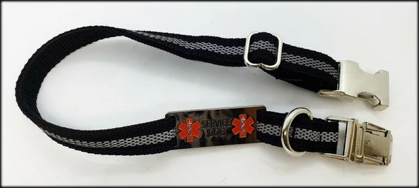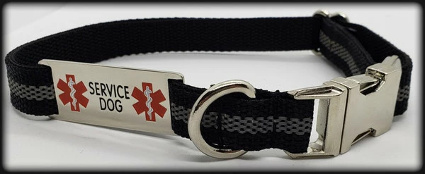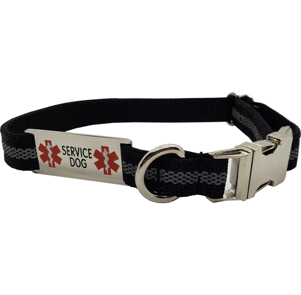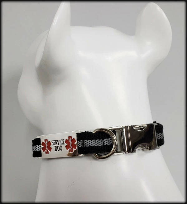 407023 Reflective Service Dog Collar W/Chrome Service Dog ID Tag