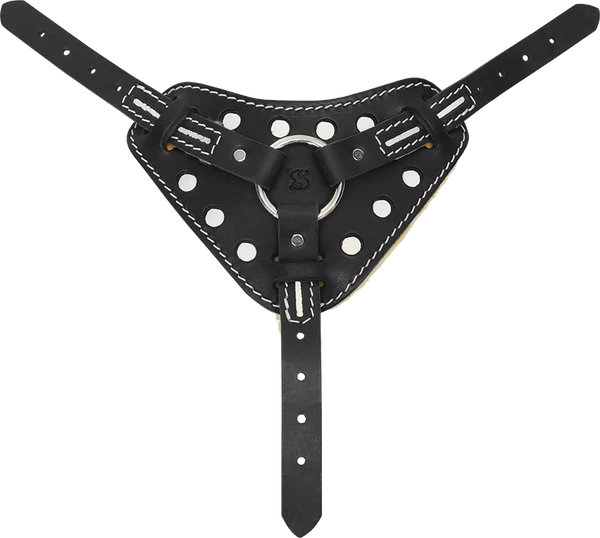 The front chest pad and straps are lined with real sheepskin padding for the maxium comfort. Reflective material is used throughout the entire harness for optimal visibility. The chest and girth straps are adjustable.