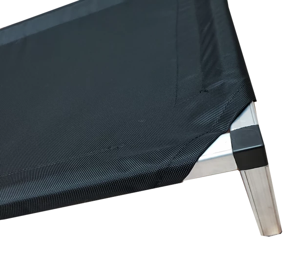 Our newly re-designed Ballistic Raised Dog Bed w/Aluminum Frame can be used both indoors or outdoors. The frame is constructed of no-rust aluminum, which does not conduct the heat so you won’t have to worry about your dog getting burned on a hot steel frame if using your bed outdoors. The newly designed ballistic cover is made from extremely durable ballistic HD fabric. This is the type of fabric that luggage & military gear is constructed from. Our ballistic materiel has a UV coating which makes it resistant to fading and very easy to wipe clean with only a damp cloth.