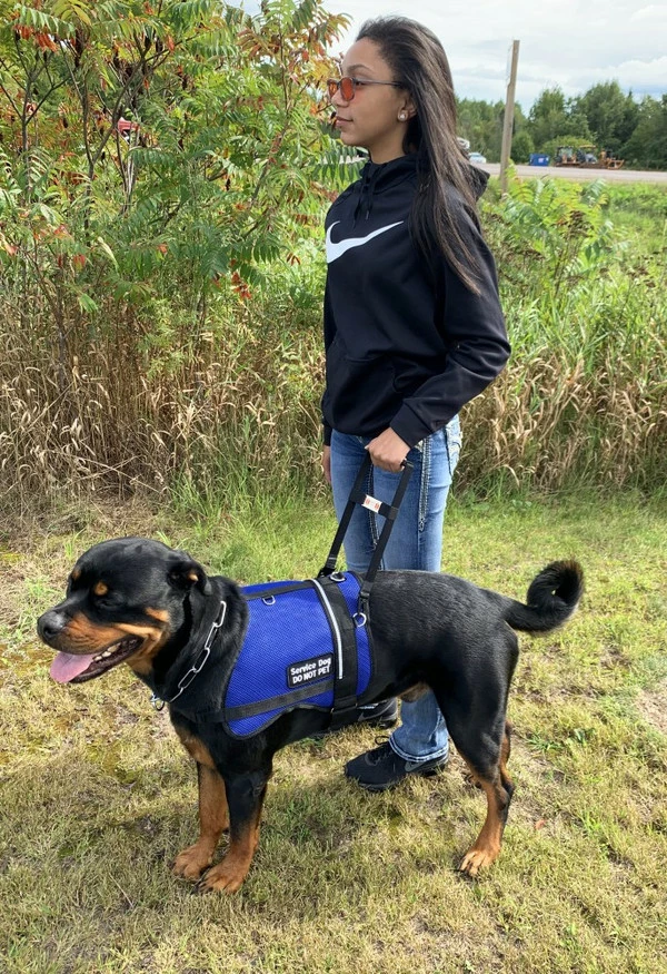 Bridge handles are used in conjunction with our service dog vests and harnesses. The purpose of the bridge handle is to give an extended reach between the dog and the handler. This handle will attach to our Guide Dog Harness, Mobility Harness, or any other of our Service Dog Vests that have the two D-rings on them.