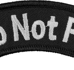 The Rocker Arch Patch is a black patch with white block lettering. It is a arch style shape patch. We use polyester, high sheen, embroidery threads for the lettering. Made in USA