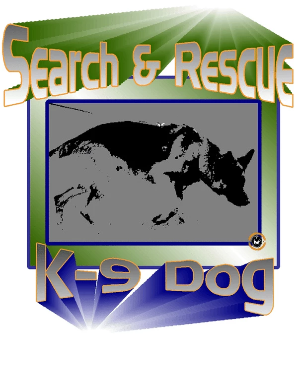 Blue/Green Tracking Dog – On the front of this shirt is a picture of a dog searching with the words “Search & Rescue” and “K-9 Dog,” there is a small paw print located on the left sleeve.