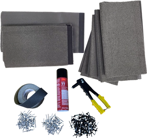This kit is designed to refurbish the ActiveDogs IPO Schutzhund Scaling Wall. The kit will include; carpet replacement for all 6 panels, grip tape for toe grips, adhesive for gluing wall carpet back down, hand rivet tool, all rivets needed, & details instructions on how to refurbish/replace carpeting.