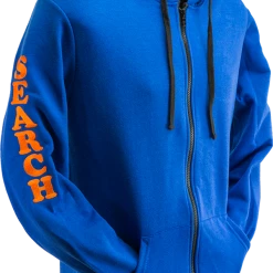 The Embroidered Search & Rescue Hoodie is a heavyweight (7.8oz.) 50/50 cotton/polyester blend which is pre shurnk. This provides warmth with out being too bulky. It is available in zip-up style. The four sizes (M-L-XL-2XL) come in black, blue, red, or gray. Black draw string, hoodie lining, and zipper on all colors.