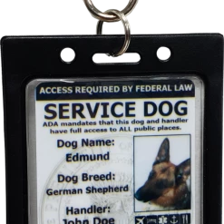 Service Dog IDs will have the ADA (American with Disabilities Act) information on the back of the ID. This information addresses your rights and protects your full access required by law to public buildings.